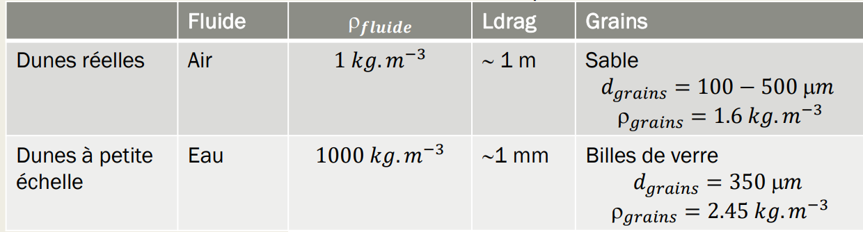 The existence of a characteristic length allows us to assert that it is possible to study barchan dunes on a small scale. This characteristic length enables us to bridge the gap between different scales. By scaling down our centimeter-sized dunes using \(l_{drag}\), we can compare them to real dunes. To create dunes in the laboratory, we need to follow two principles: