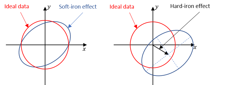 - Soft-Iron distortions (3x3 matrix \(A_{si}\))